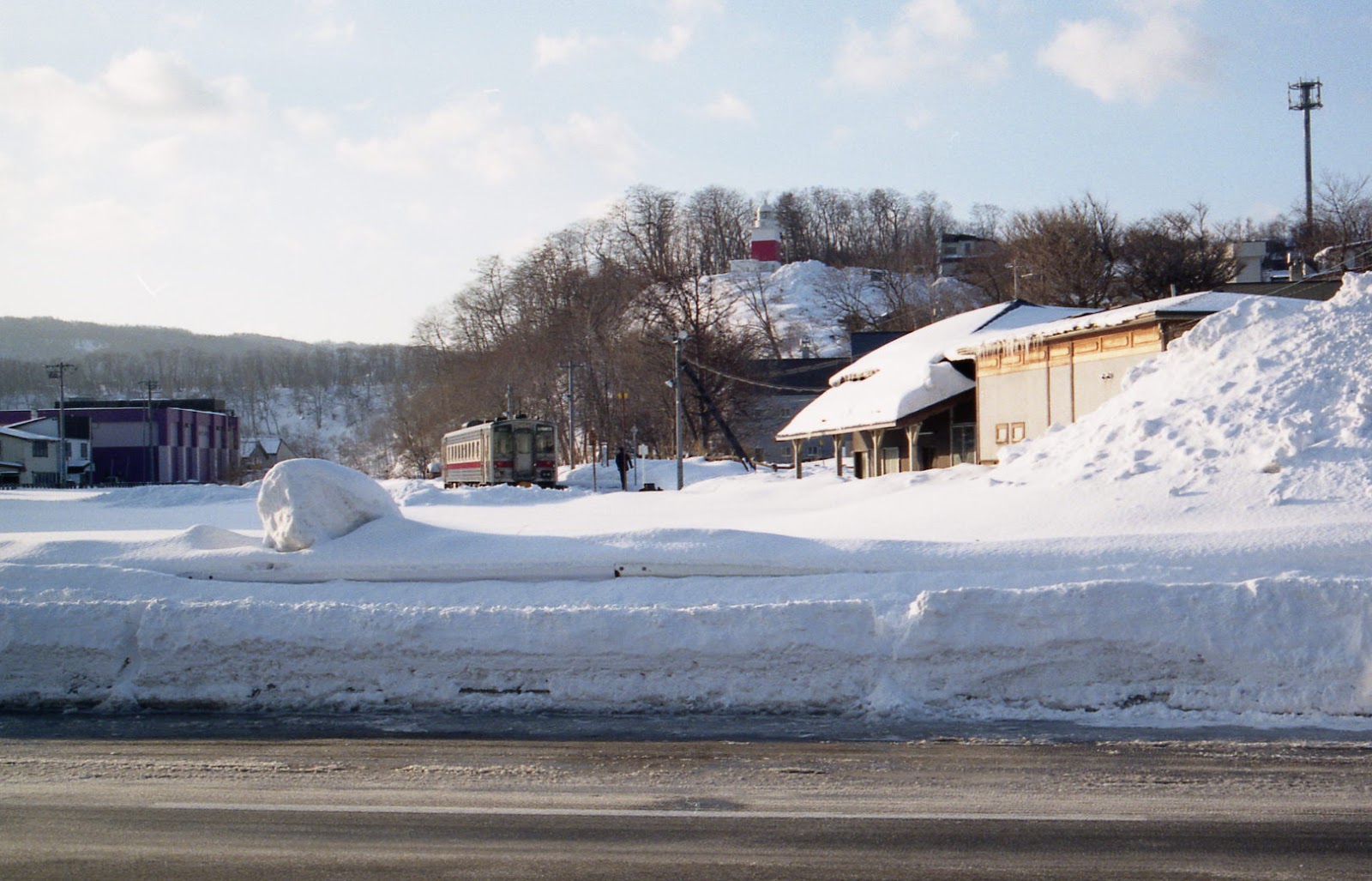 瀬越付近では海岸線を走り、荒波が打ち寄せるのが見える。遠くに雪山(雄冬?)も見える。増毛到着時の乗客は通学生を中心に30人弱。駅前には、古びているが堂々とした建物の旅館等がある。きっと、鰊漁で好景気だった時にできた町並みなのだろう。