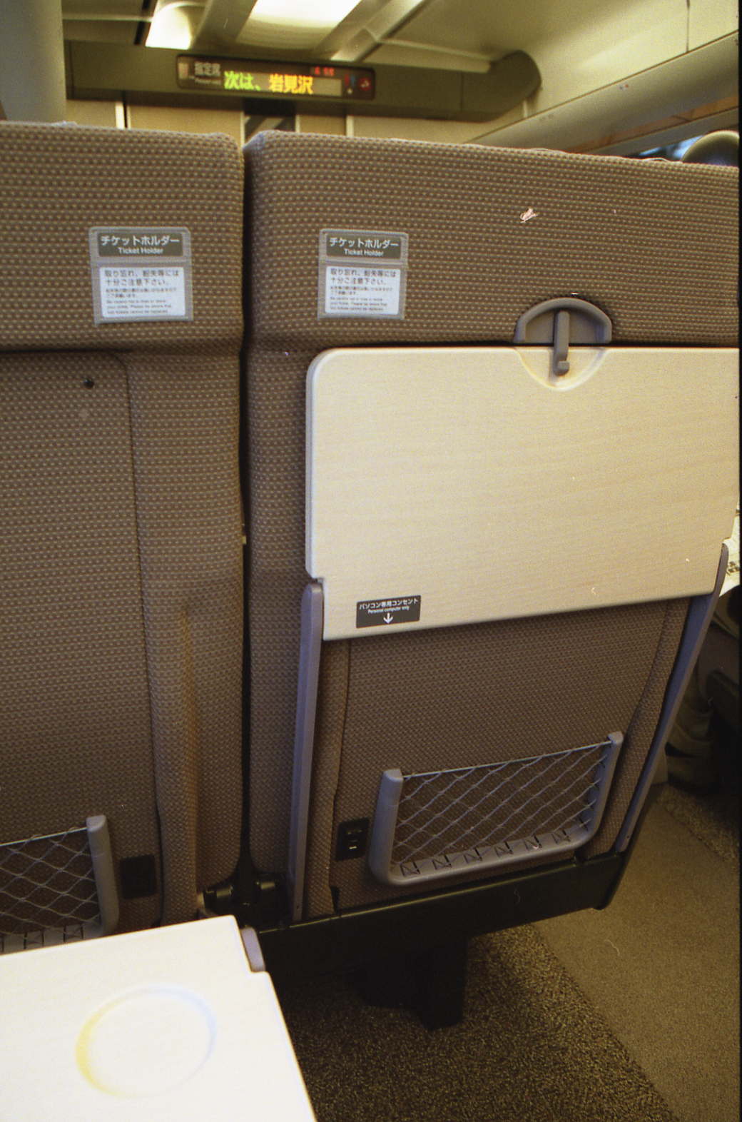 この列車にはグリーン車は連結されていないが、指定席はu-シートと称して、自由席と差を付けている。シートピッチが広く、背もたれの頭の部分が深い。パソコン専用コンセントが各席の背もたれに付いている。また、背もたれに収納のテーブルは、白木模様(材質はプラスチックのようだが)で品が良い。通路も含めて絨毯が敷かれている。トイレは車椅子対応の大きな部屋になっている。自由席が混雑しているのと比べて空席が目立つ。座席は2割も埋まっていない。短時間ながらゆったりと過ごす。