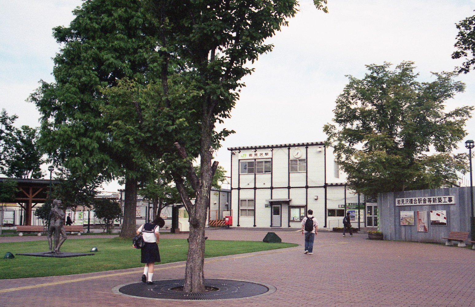 駅前に札幌オリンピックのモニュメント。セイコーの提供らしく、同大会での金メダリスト名と、この記録がセイコーの時計で記録された旨の銘板がある。